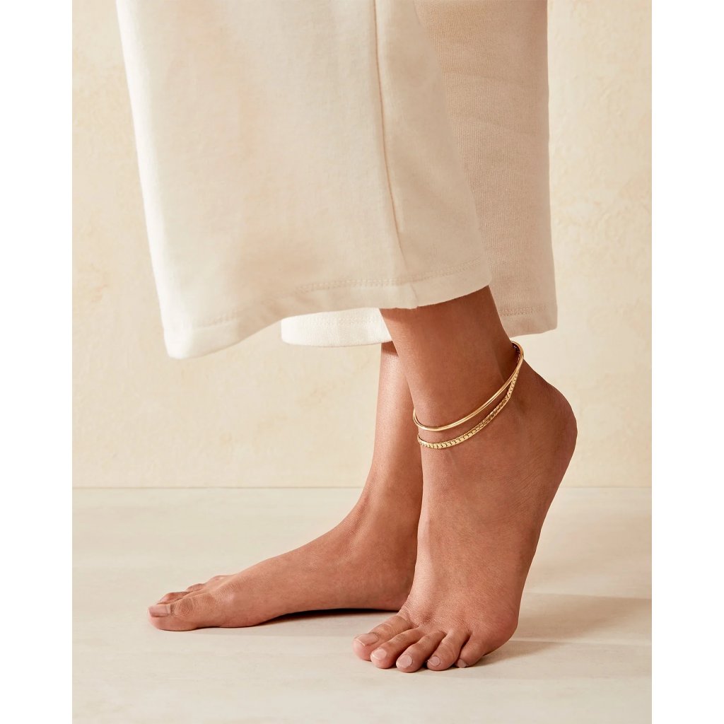 Voděodolný, ultralehký náramek na nohu tvoří výrazný kousek, který na kotníku vypadá dokonale samostatně, ale stejně tak se dá krásně kombinovat s dalšími anklets.