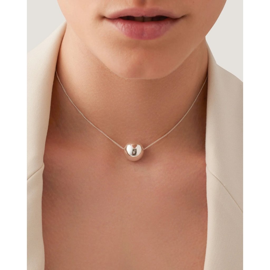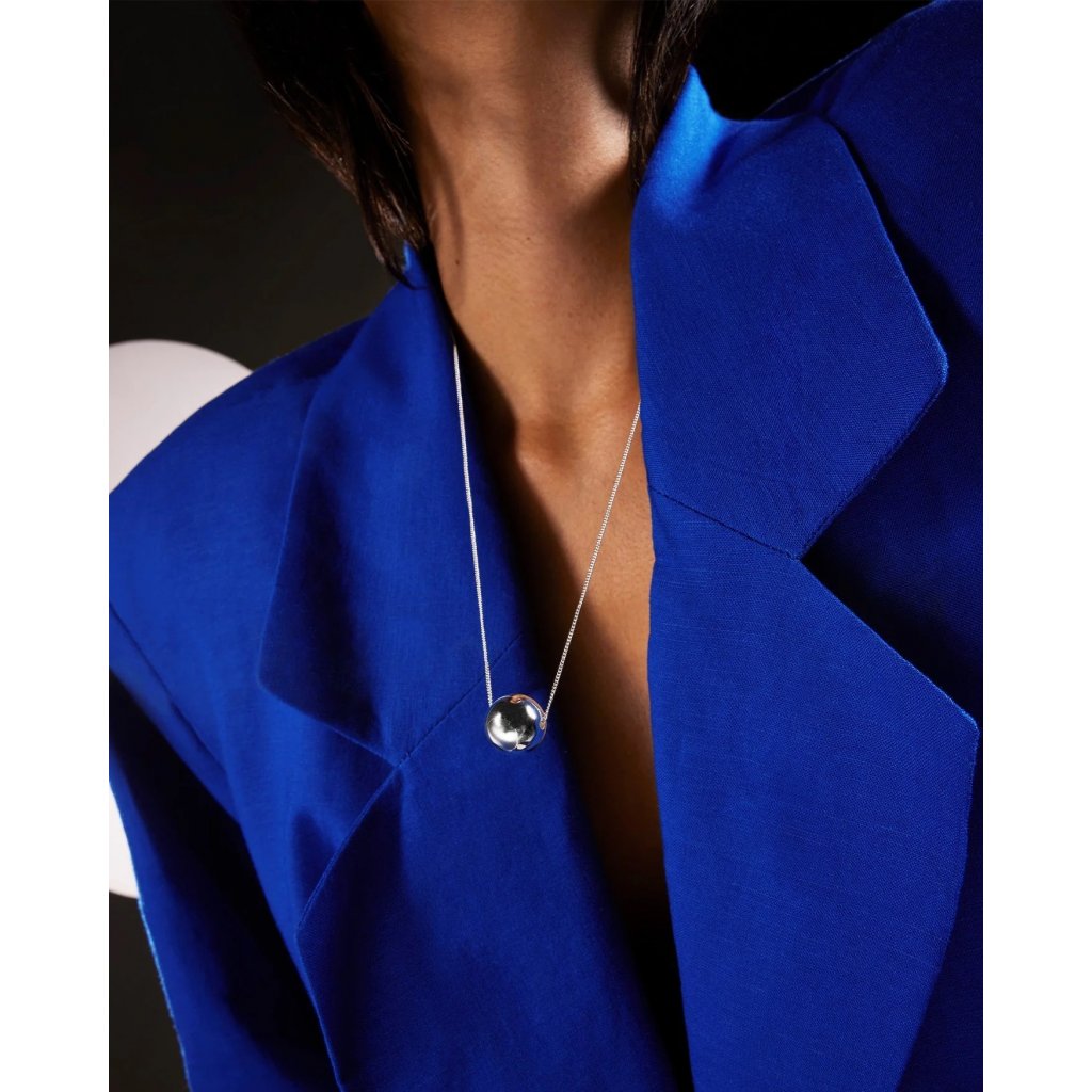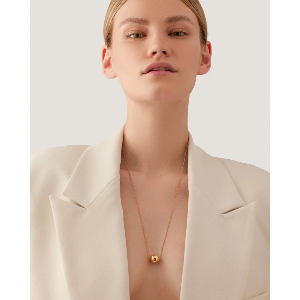 Rafinovaný náhrdelník s přívěskem kuličky, který díky posuvnému zapínání můžete nosit v různých délkách. Tvar koule navíc aktuálně patří k top trendům designového světa.