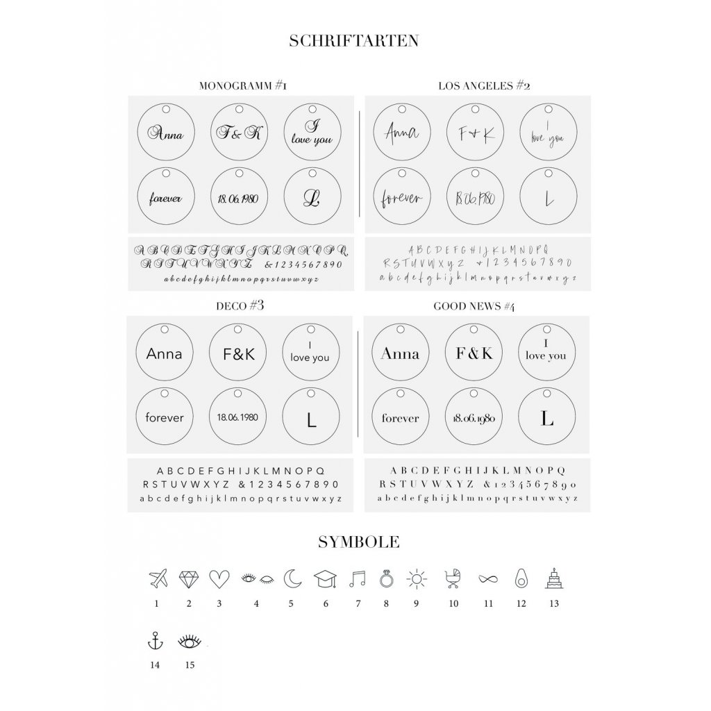 Přívěsek medailonu lze ozdobit rytinou. Velikost rytiny je individuálně přizpůsobena přívěsku. Rytí lze umístit z přední i zadní strany.