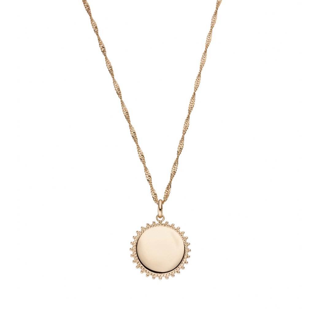 Náhrdelník s výrazným medailonem s okraji připomínajícími krajku. Na medailon vám vyryjeme jména, písmena i číslice podle vašeho přání.