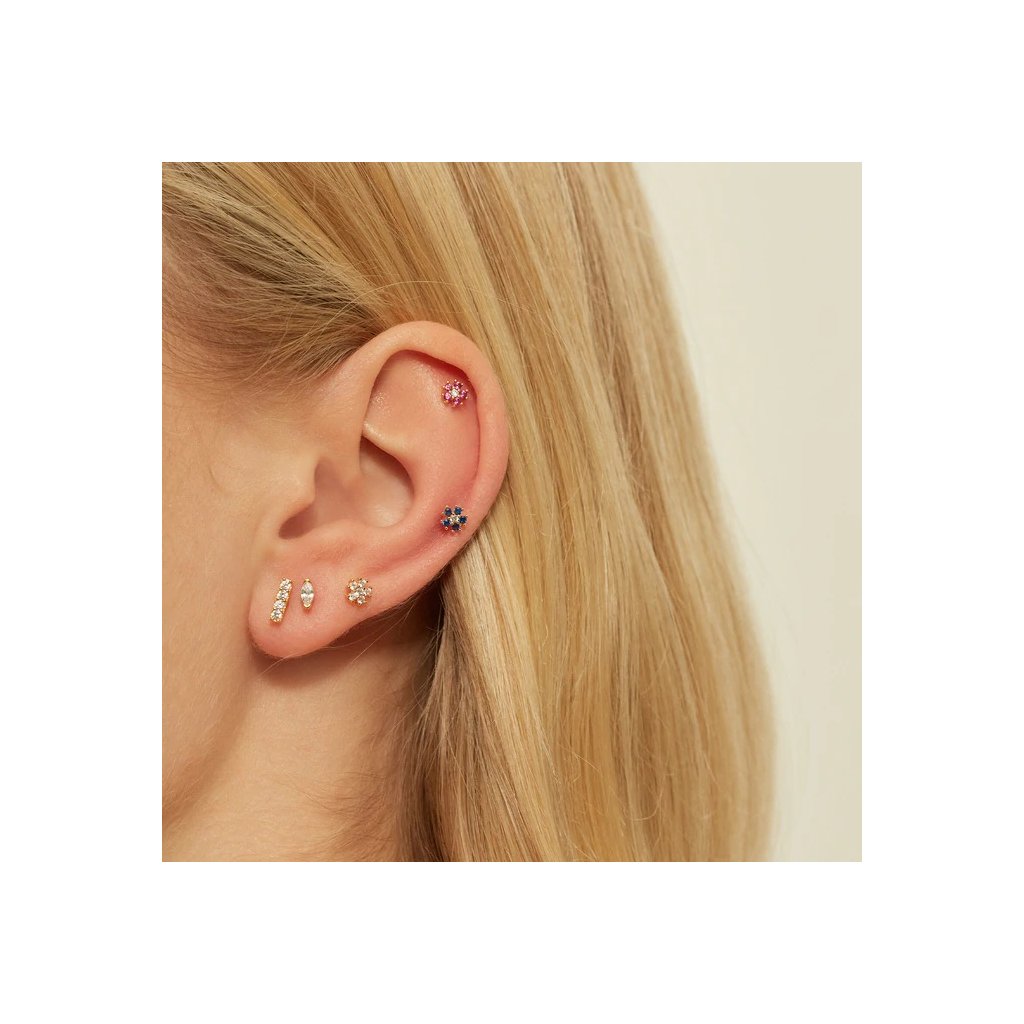 Piercingová náušnice - kytička s modrými a bílými kamínky.